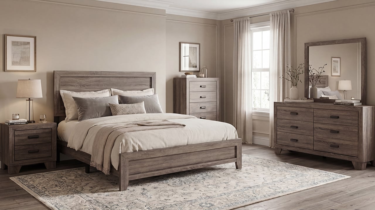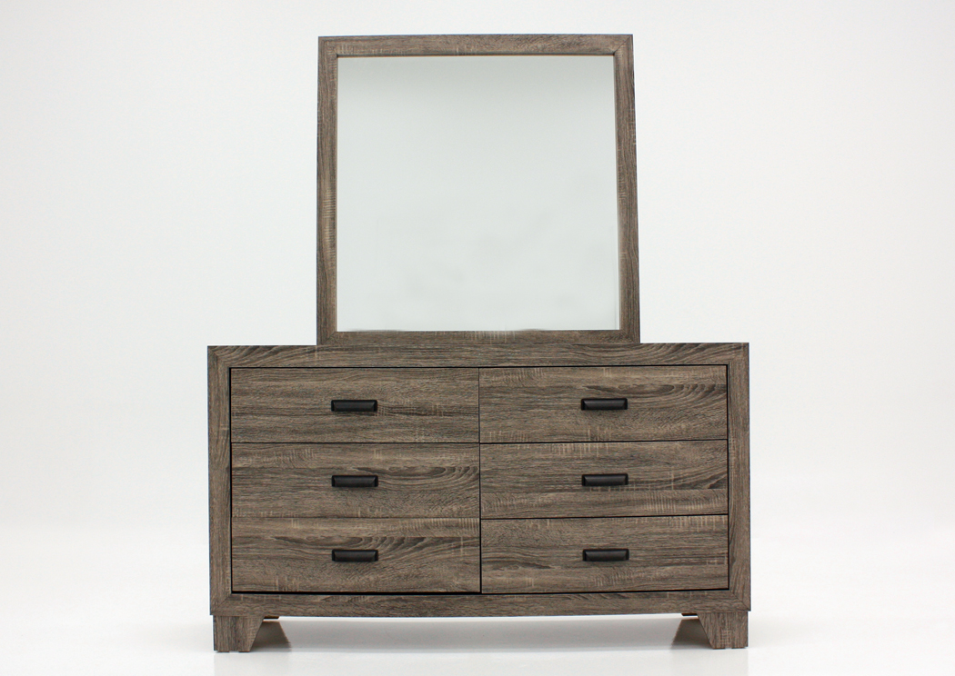 Millie Full Size Bedroom Set by Crown Mark. Full Bed, Dresser with Mirror, Nightstand. Gray Finish with Wood Grain Look. Transitional Style.