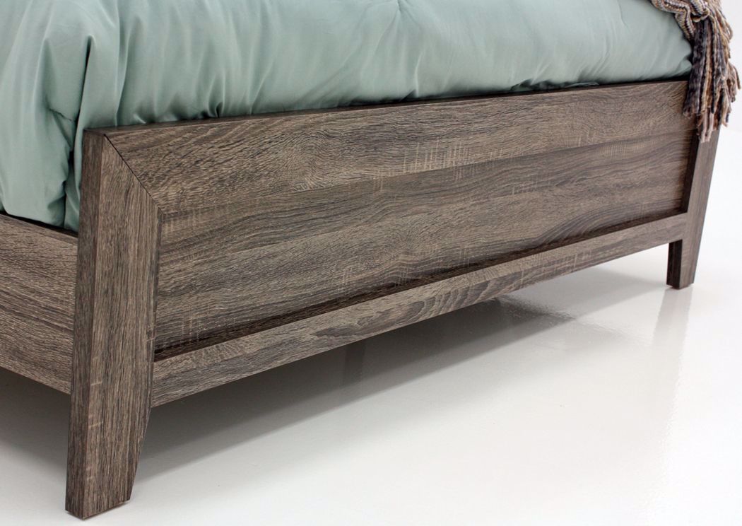 Millie King Size Bed by Crownmark. Framed Panel Bed. Soft Gray Wood Grain Finish. Transitional Style.