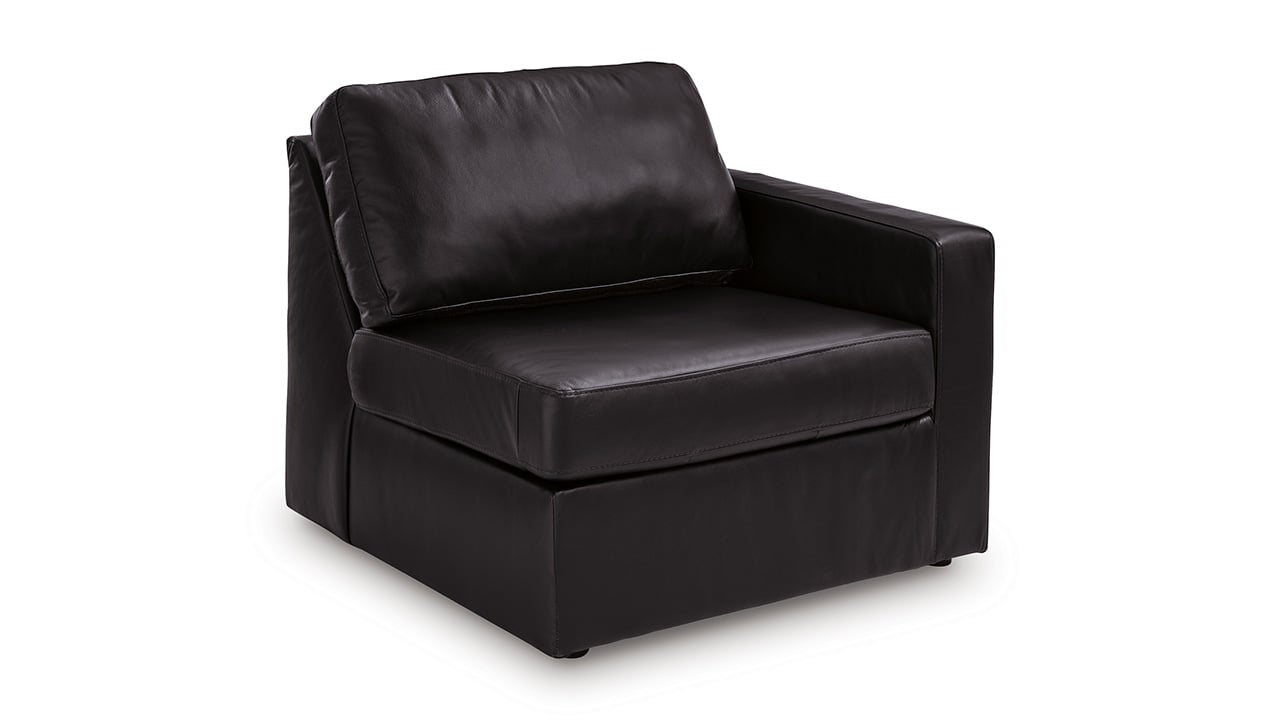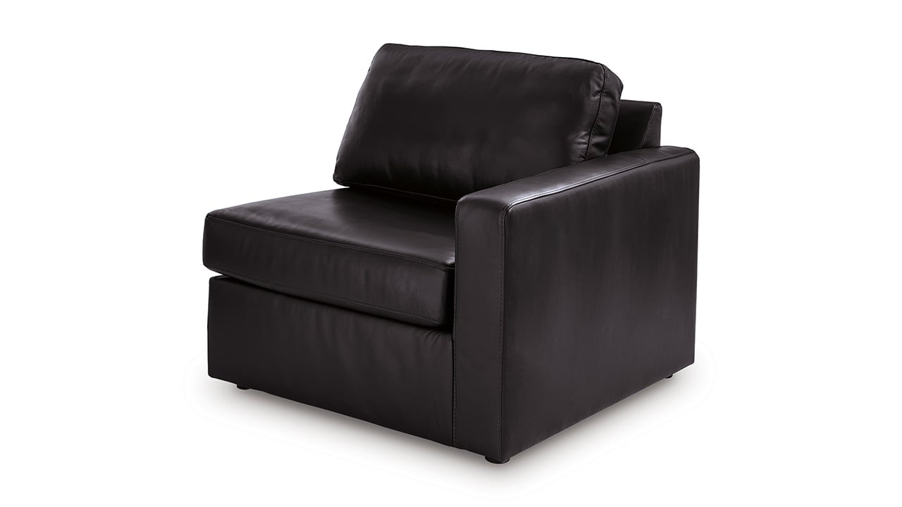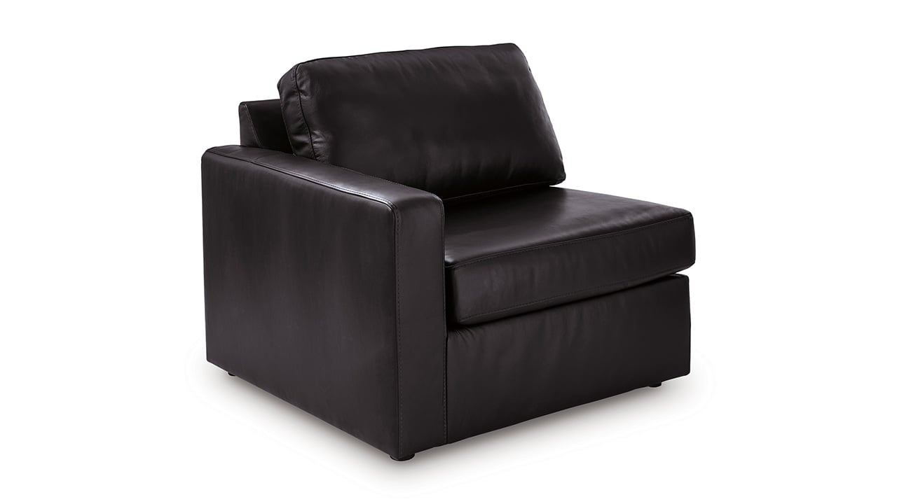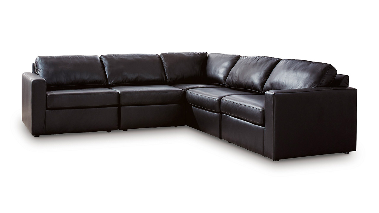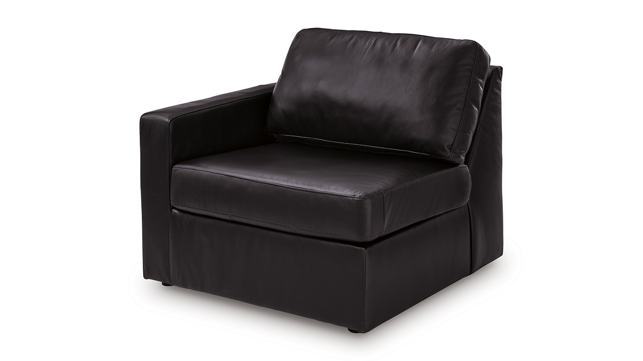 Modular design includes a mix of corner, wedge, and armless pieces that can be arranged freely