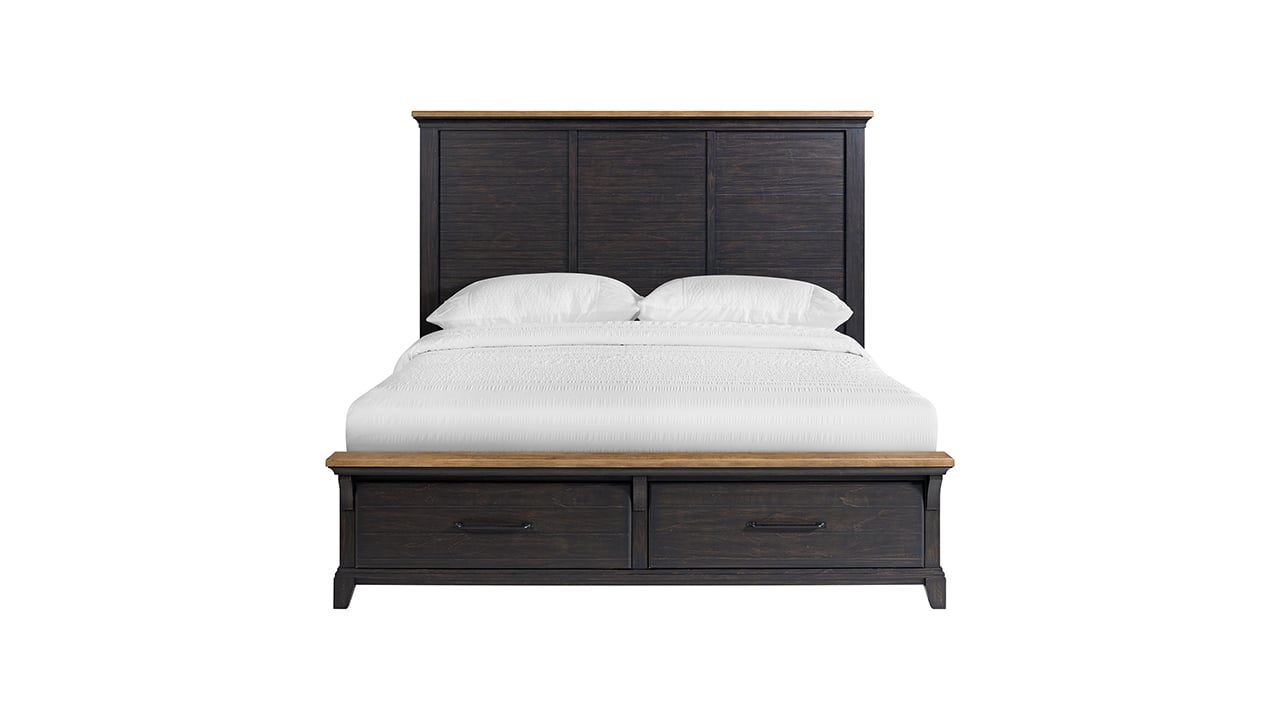 Designed to bring both beauty and function into your space, the Montrose Queen Storage Bed offers a refined take on everyday comfort. The paneled headboard and softly contrasting espresso and brown dual-tone finish, create a relaxed yet polished look, while built-in storage at the footboard helps keep your bedroom feeling calm, organized, and effortlessly put together.
