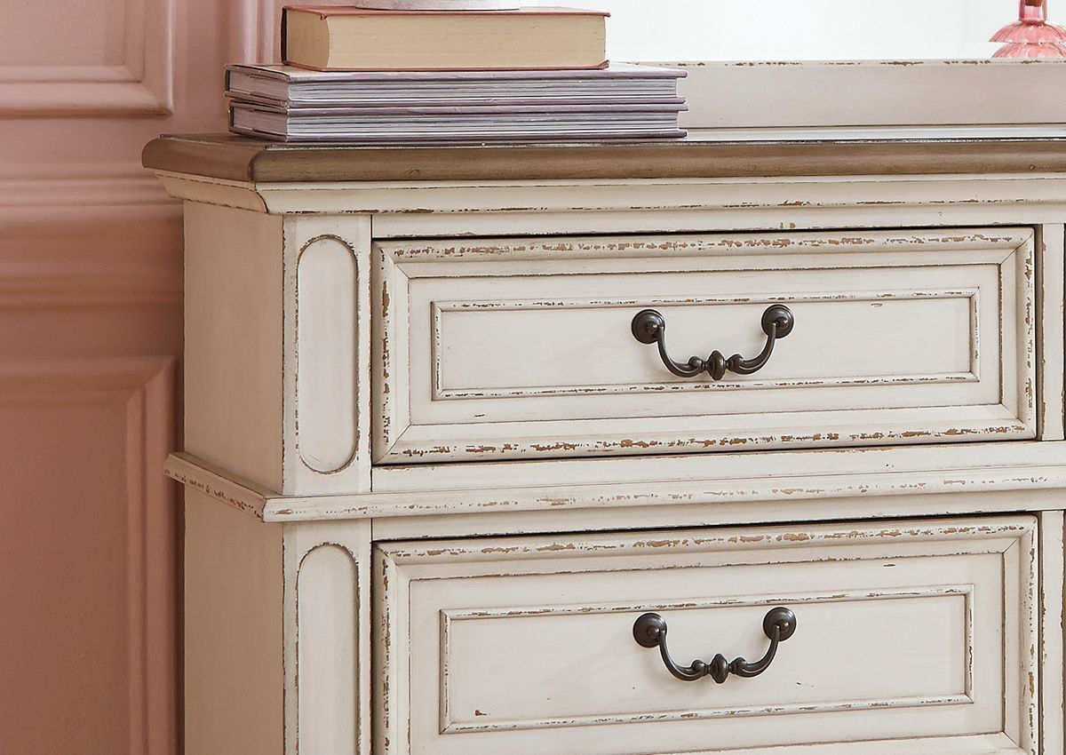 Realyn Chest of Drawers by Ashley Furniture. Distressed White. 5 Drawers. Perfect Storage Option for the Realyn Collection of Beds. Traditional Cottage Design.