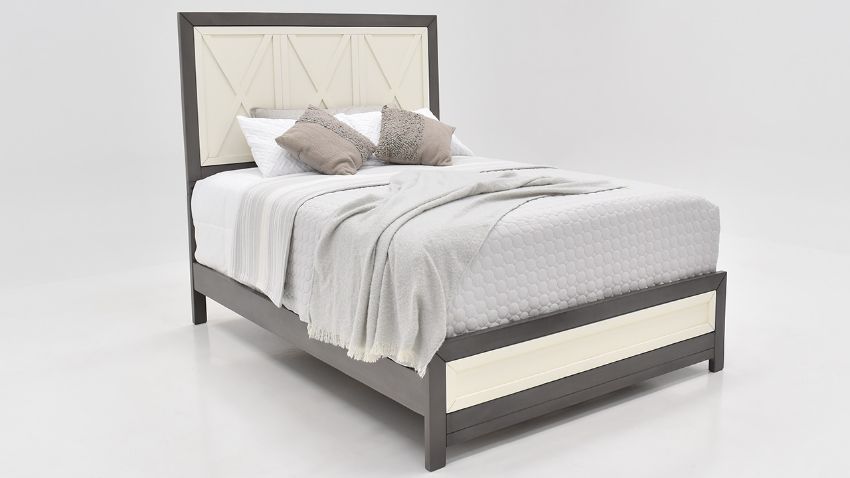 Off-White and Slate Gray Queen Panel Bed