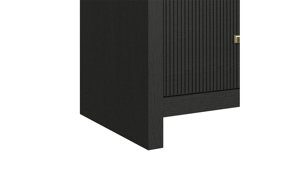 Complete your bedroom with the sleek sophistication of the Ridgemont Nightstand in Black. The rich black finish with subtle wood grain detailing creates a bold yet calming presence, while softly rounded edges and vertical reeding add texture and modern refinement. Thoughtfully designed with built-in charging and smart storage, this nightstand keeps everyday essentials close at hand in effortless style.