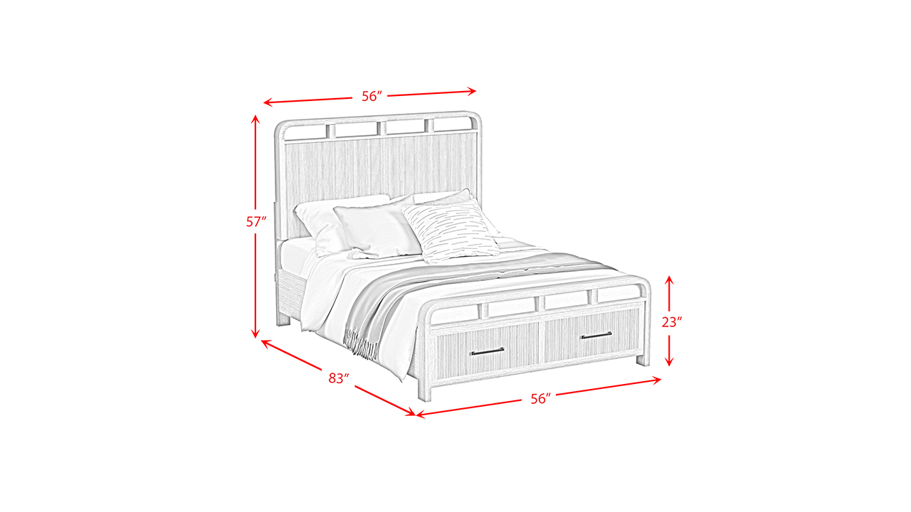 The Ridgemont Full Bedroom Set in Natural combines a modern light wood finish, sleek rounded edges, vertical reeding, and bold geometric accents for a stylish and functional bedroom retreat with a Full Storage Bed, Dresser with Mirror, and Nightstand offering ample storage and contemporary appeal.