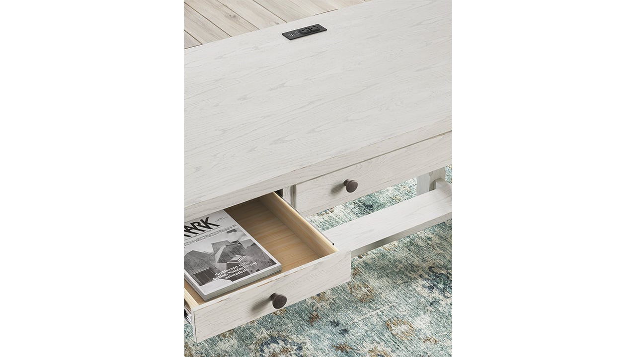 Built-in 110V power supply with USB-A and USB-C charging ports