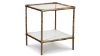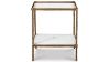 Accent Table by Ashley Furniture. Antique Brass-Tone Finish Aluminum Frame. Glass Top with Marble Lower Shelf for Storage or Display.