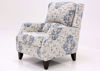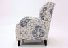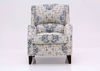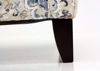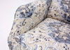 Vintage-inspired blue and neutral beige patterned upholstery adds a transitional, calming touch