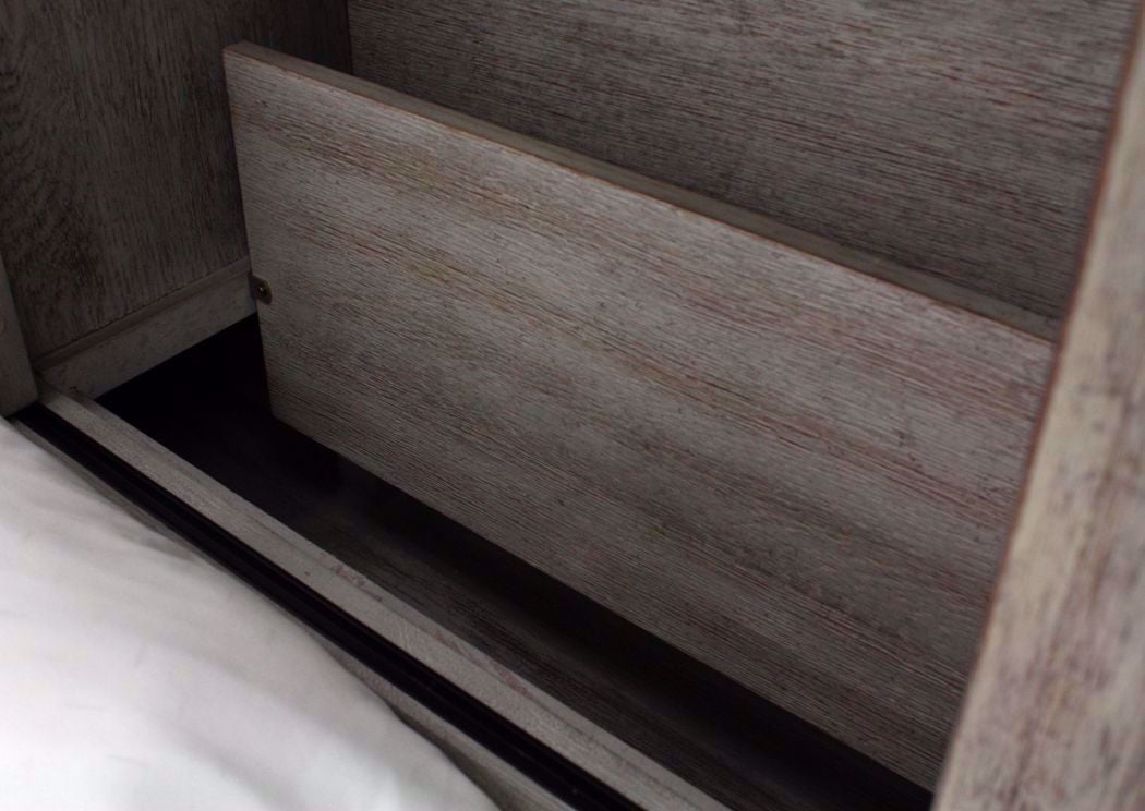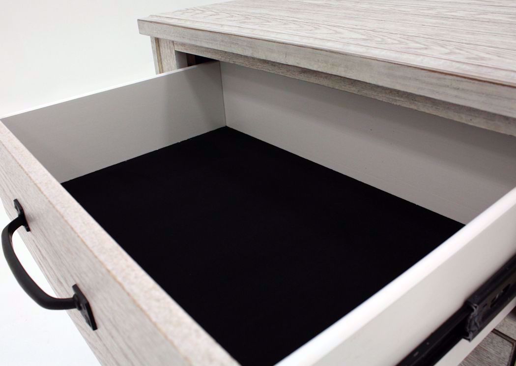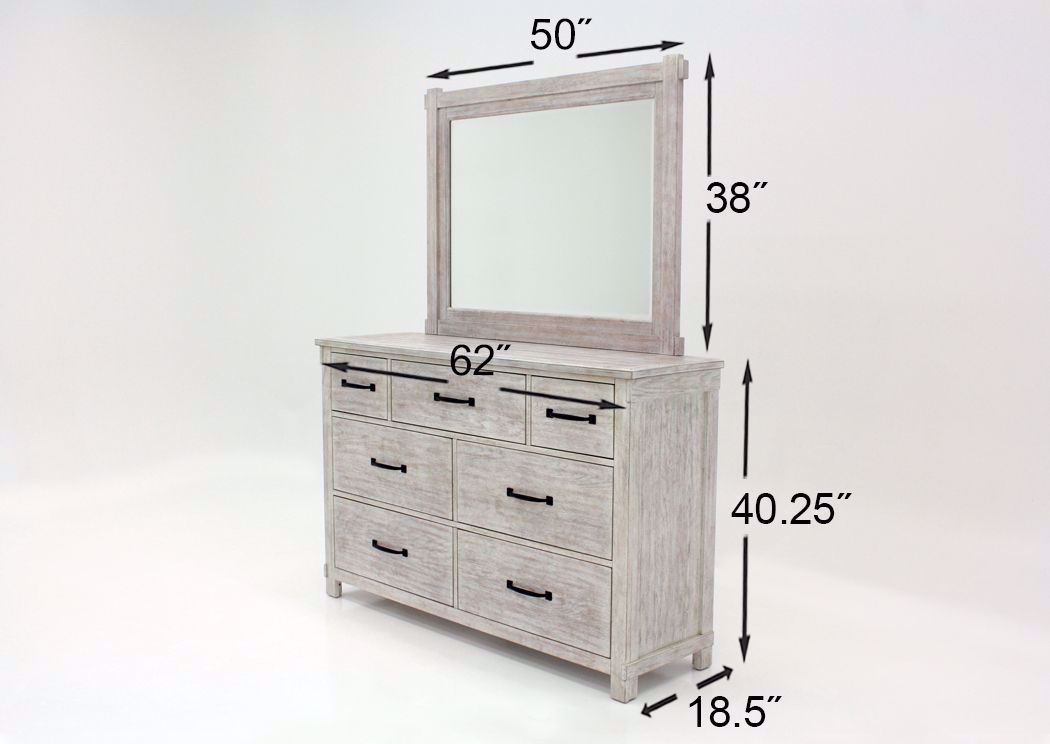 Scott Queen Size Storage Bedroom Set by Elements. Tons of Storage. Whitewash with Rub Through Finish. Queen Bed, Dresser with Mirror and Nightstand.