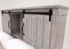 Scott Chest of Drawers by Elements International. Whitewash with Rub Through Finish. Barn Door Enclosed Storage Cabinet. 2 Large Drawers on Bottom.