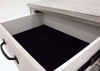 Scott Queen Size Storage Bed by Elements International. Storage in Headboard and Footboard. Whitewash with Rub Through Finish. Vintage Inspired.