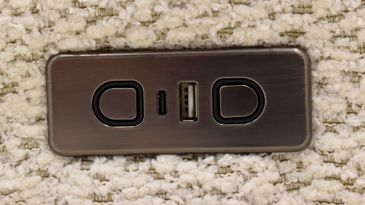 Bold and sophisticated, the Katy Power Slider Chair in ebony black delivers a striking take on contemporary comfort. The streamlined silhouette is paired with a versatile sliding chaise, allowing you to customize your lounging experience. Generous cushioning and supportive back pillows enhance relaxation, while sleek black legs and a built-in USB charging port make this piece as practical as it is stylish.