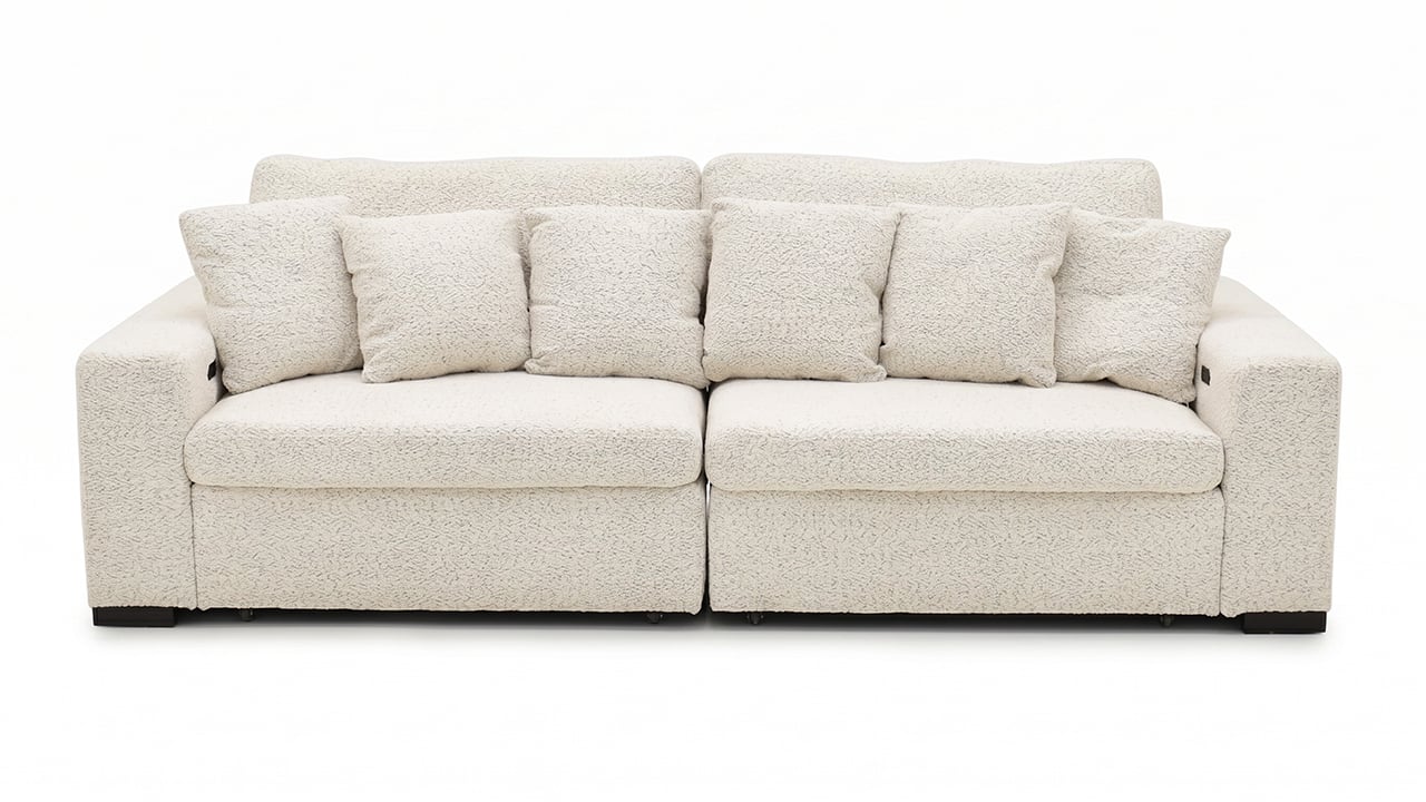 Bold and refined, the Katy Power Slider Sofa in ebony black makes a striking statement in any modern setting. The streamlined design pairs beautifully with a versatile sliding chaise, allowing you to tailor your comfort with ease. Deep, supportive cushions and coordinating back pillows create a cozy retreat, while sleek black legs and a built-in USB charging port complete this effortlessly functional piece.