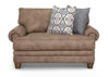The Hazelnut Brown Sicily Chair by Franklin Corporation is a stylish, large-scale piece sure to make a statement in any space. Featuring deep cushions and overstuffed backs, solid wooden legs, and padded inset roll arms with pleated edges, the Sicily is as comfortable as it is stylish. Includes accent pillows and lots of wow! Perfect place to curl up with a book.