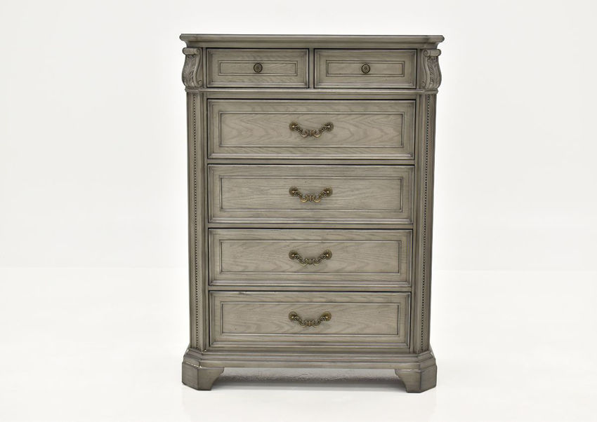 Siena Chest of Drawers by Avalon Furniture. Brushed Gray Finish. Grand and Elegant Style. 6 Drawer Chest.