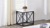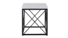 End Table with White Marble Top and Metal Base. Durable and Beautiful. Lattice Details on Black Base.