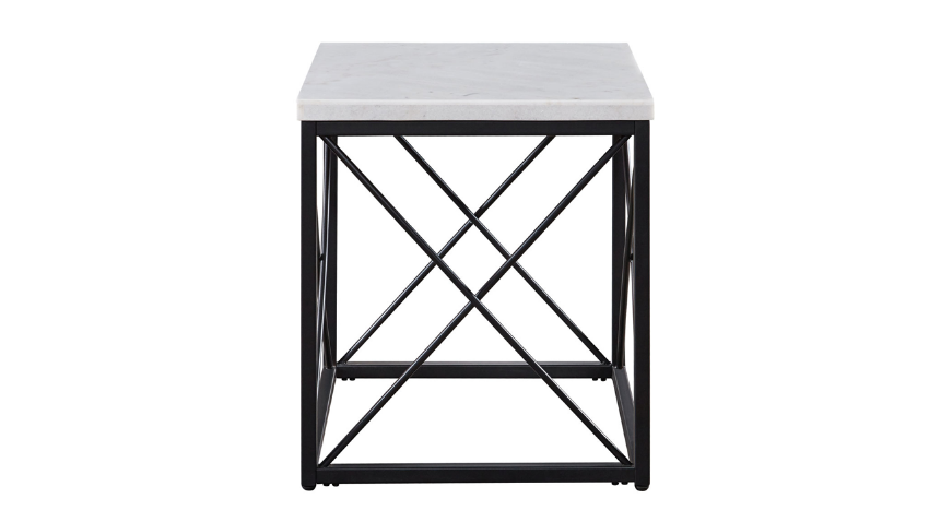 The Skyler Living Room Table Collection is transitional with a modern influence. The Skyler End Table features a unique modern latticework iron base with a stunning white marble top. This mixed media end table feels light and airy but its marble tops give extra durability for heavy-duty use in the toughest environments, the family room. Bring style and beauty to your living room with a Skyler End Table by Steve Silver Company.