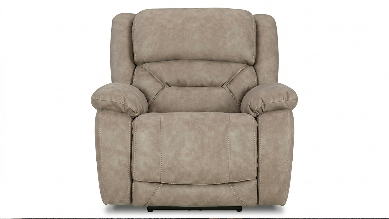 The Skywalker Power Recliner in Fog combines a power headrest, lumbar support, an extended footrest, and a Zero Gravity mechanism for enhanced comfort and health benefits, with a USB charging port for added convenience.