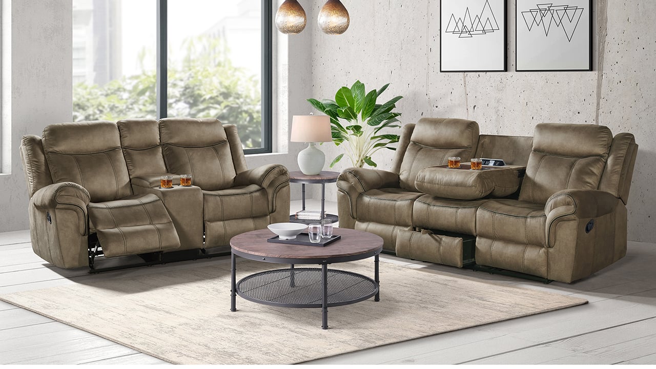 Cupholders integrated into sofa and loveseat consoles
