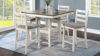 Enjoy great meals and memories with family and friends around the charming and chic Tahoe Pub Style Dining Room Set by Crown Mark International Furniture! Features include a lustrous chalk gray finish on a Mango wood veneer, accented with plush padded polyester upholstered barstools, constructed of durable and beautiful tropical hardwoods. Plus, you'll also love the convenient bottom shelf to display your household collectibles. This dining room set is perfect for dine-in kitchen areas or designated dining rooms. Includes counter height table and 4 barstools.