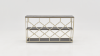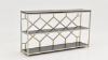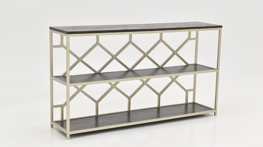 The stunning Toro Console with Open Shelves by Coast to Coast has been especially designed to be a showcase unit for any space, whether in your hallway, foyer, kitchen or den. Three long shelves finished in Toro are perfect for everything from your cookbooks and vintage pottery, to baskets of books and games. The silvery metal linear frame adds just the right amount of stylish metallic, and has the added feature of a unique honeycomb design backdrop for that surprise burst of pattern.