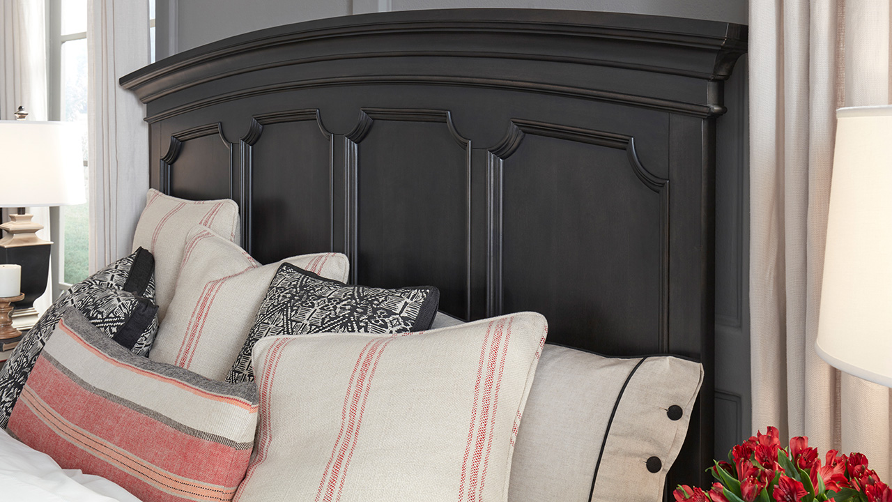 The inviting Townsend Queen Panel Bed captures rustic transitional design, feeling comfortable in almost any home. Features such as canted corners; heavy moldings and ebonized maple inlays add the right amount of classic design, while the finish gives it a casual tone.