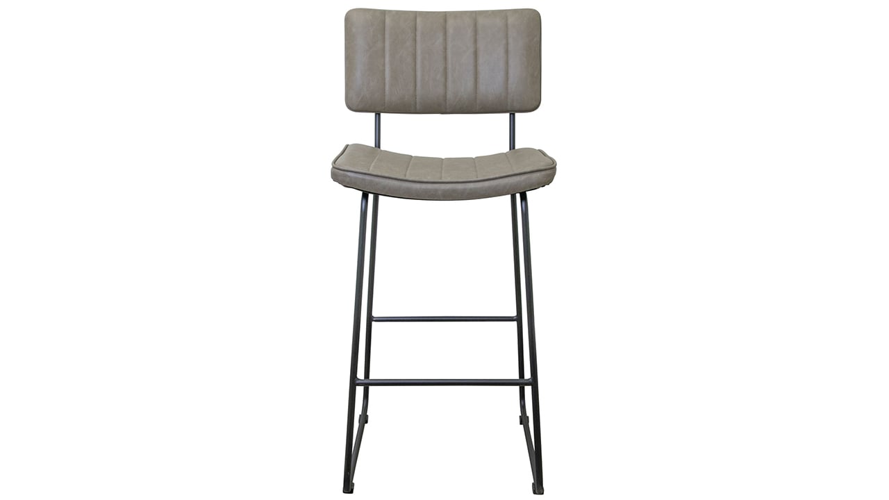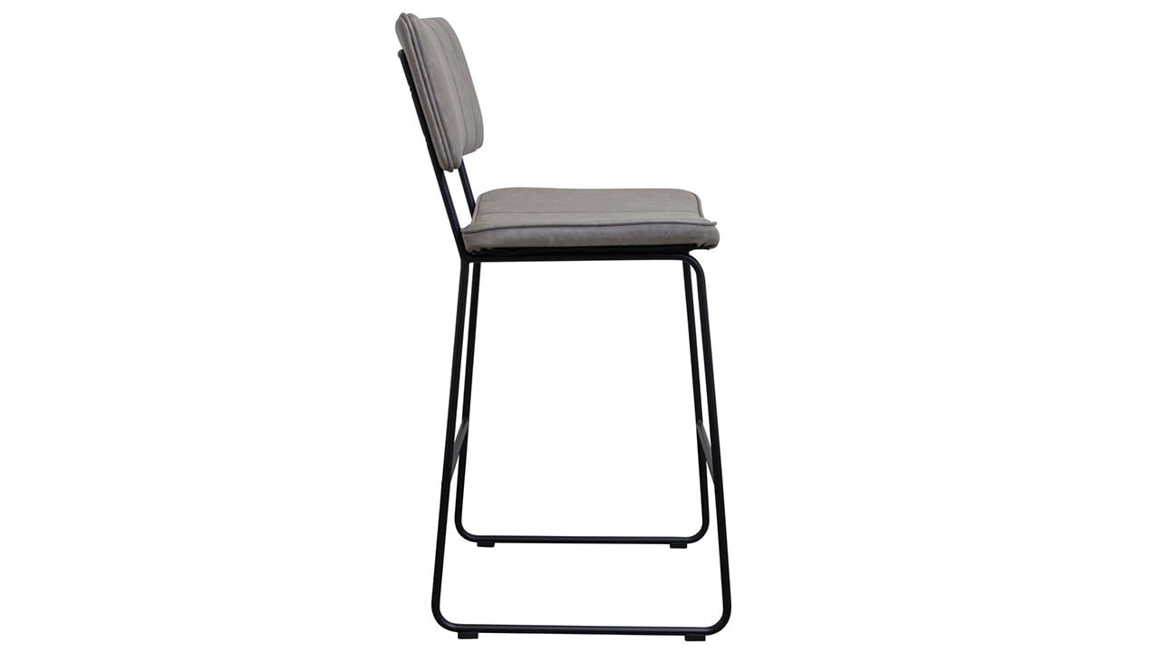 Gray vegan leather upholstery replicates the look and feel of real leather in an easy-care material