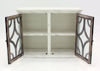 Bring a touch of chic to your home, office or home office with the Westgate Two Door Cabinet by Vintage Furniture. This accent cabinet has a charming and rustic design with a distressed painted white finish. Also, two distressed brown doors with wooden lattice style grilles over glass inserts enclose a single storage shelf. The Westgate 2 Door Cabinet by Vintage is a perfect storage option for the dining room, living room, home office or office.
