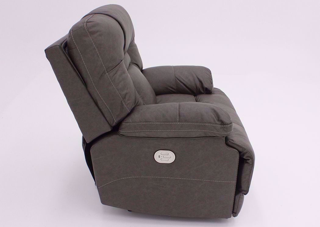 The Wurstrow Power Recliner brings lazy day lounging into the modern age. This contemporary power activated recliner features pillow arms and a power adjustable headrest to ensure your comfort for hours on end. Other features include a smooth smoke gray top grain leather match upholstery, an extended ottoman for enhanced comfort, and an attached seat and back! Plus, you’ll love the convenient USB charging port to charge your phone, laptop, or controller without having to leave the comfort of your favorite spot..